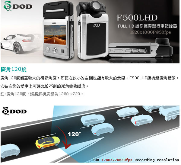 就是這台 DOD F500 LHD ,畫質驚人,清晰度可以跟藍光媲美了.有了它,上路再也不用怕了!